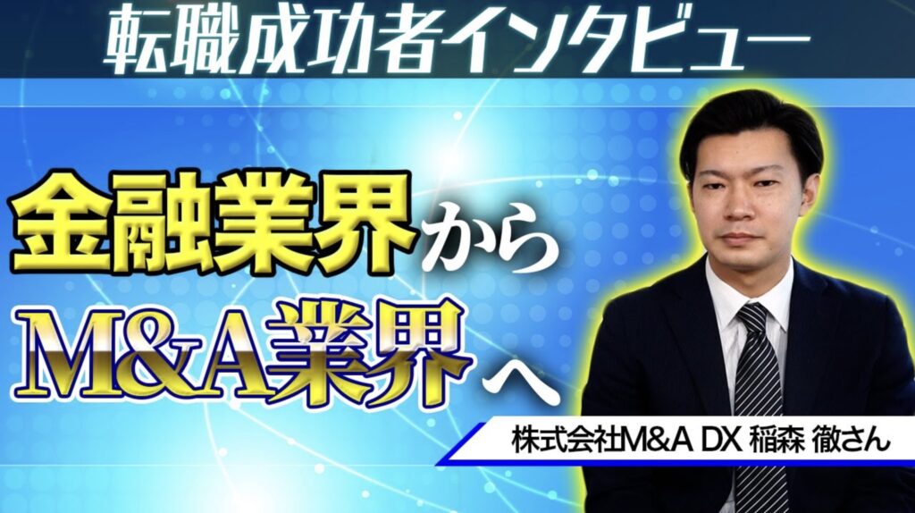 本日も弊社のサポートでM&A業界に転職した方へインタビューをしていきます。M&A DXシリーズ第二弾になりますが今回は、金融業界から株式会社M&A DXへ転職された稲森様へインタビューをしていきます。稲森様は昨年10月にご相談いただき約半年間サポートさせていただきましたが、これまでどんなキャリアを歩んできたのか、M&A業界に転職された理由、代表 高野のサポートはどんな感じだったか?を聞いていきたいと思います。